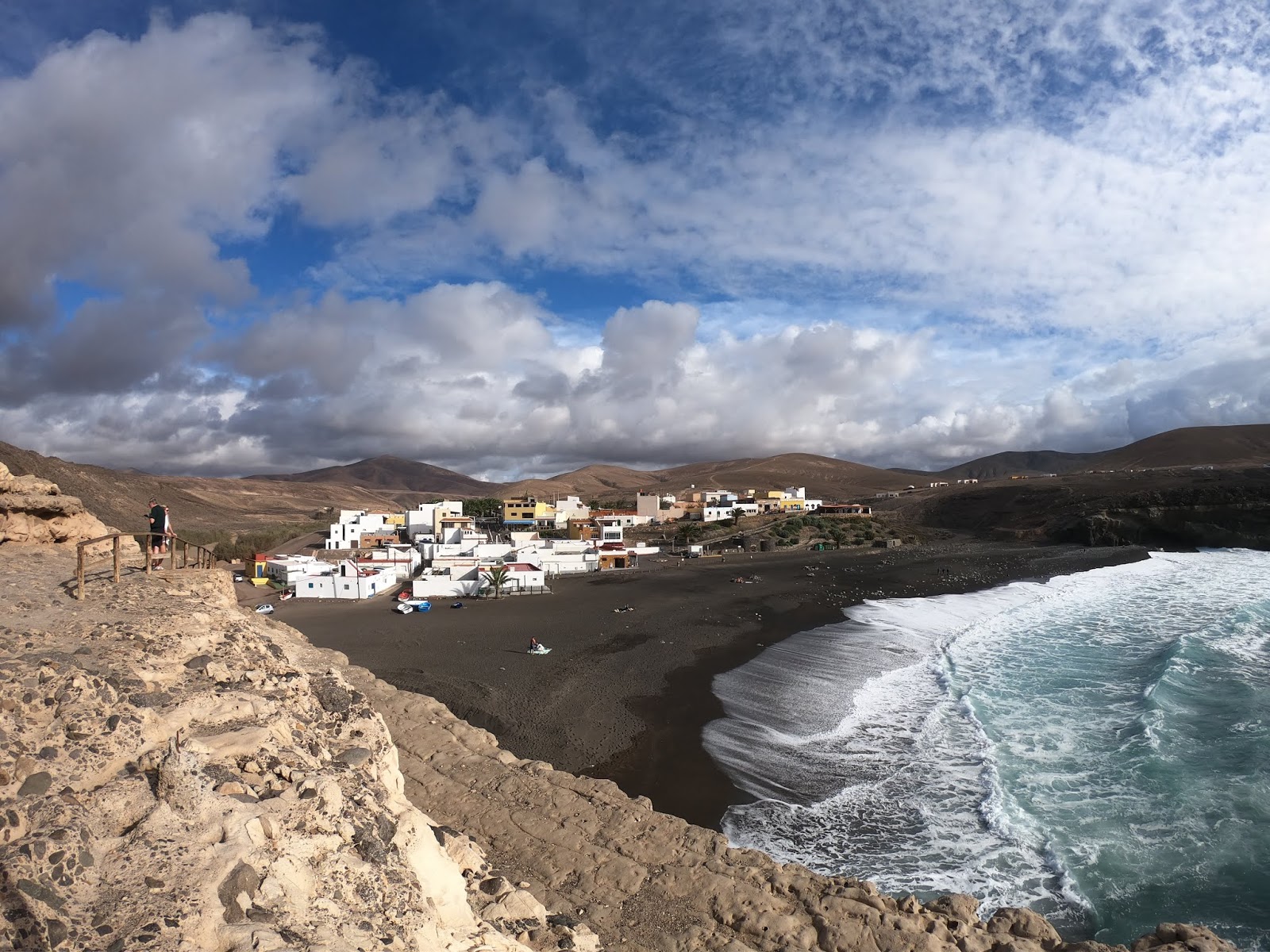 – Ajuy: poblet molt petit costaner molt diferent a la resta. Platja de sorra negra i amb mar bastant furiós. Ideal per passar un migdia i fer un bon dinar amb vistes al mar i menjant peix fresc. Per un caminet cap al nord de la platja podem arribar a les Coves Volcàniques de Ajuy. Depenent de les marees i el temps, es pot entrar a explorar-les.