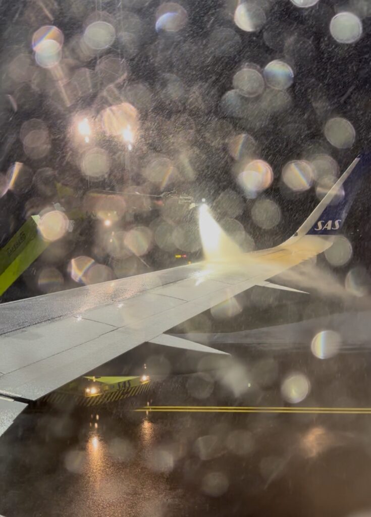 El vol ha sortit molt buit i súper puntual, però hem hagut de fer una parada a boxes perquè ens descongeléssin les ales abans d’enlairar.